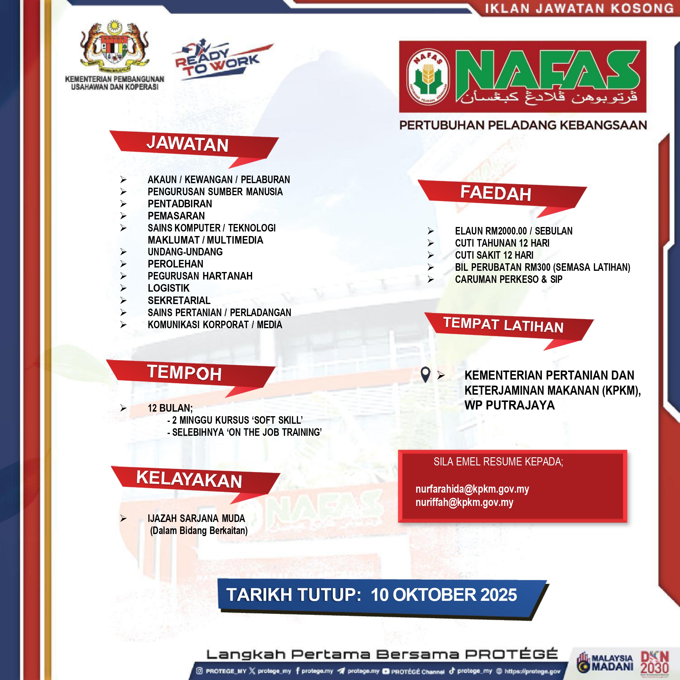 Iklan Pengambilan Jawatan Protégé-Ready to Work (RTW)